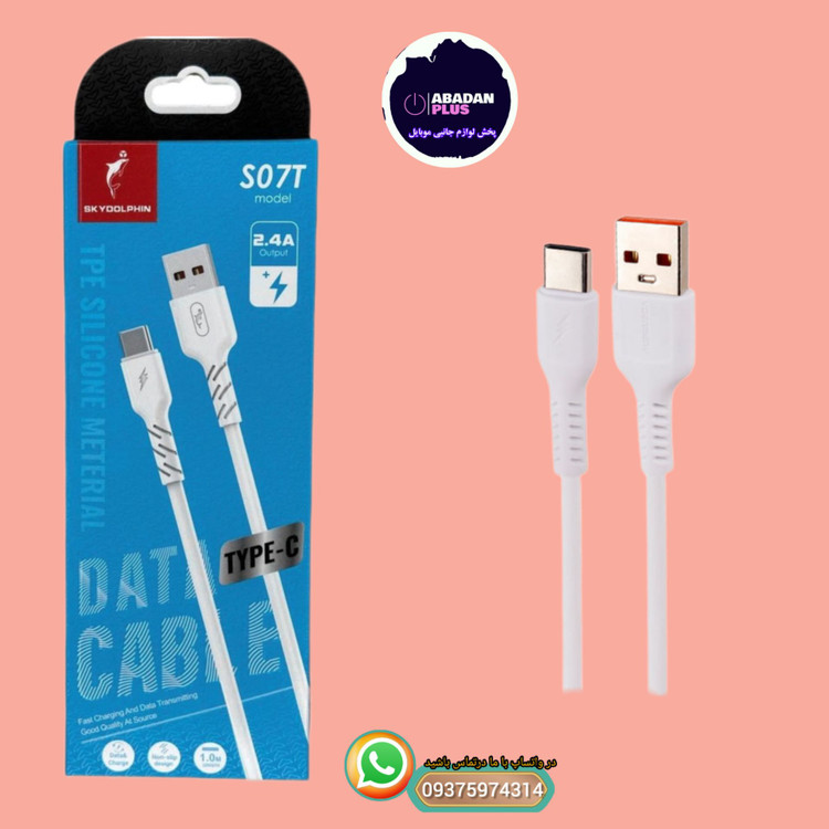 کابل فست شارژ Type-C اسکای دلفین مدل Sky Dolphin S07T به طول 1 متر با قابلیت انتقال شارژ سریع تا 2.4 آمپر و قابلیت انتقال اطلاعات و دیتا.