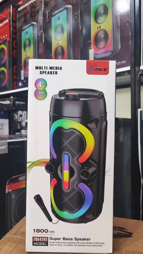 مشخصات اسپیکر: ارتفاع 38 سانتی متر باتری قابل شارژ داخلی لیتیوم یونی 1800 میلی آمپر رقص نور RGB ورودی های AUX/USB/TF CARD/MIC نوع اتصال بیسیم قابلیت متصل شدن به موبایل/تب لت/لپ تاپ و تلویزیون دارای بلوتوث از برند پر فروش ZQS SINGE اقلام همراه: میکروفون سیمی/ریموت/کابل شارژ